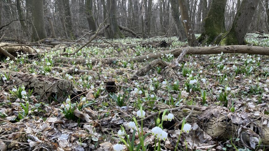 A tavaszias időjárásnak és a Fertő–Hanság Nemzeti Park munkatársainak köszönhetően most már újra járható a tőzike tanösvény. Az erdő gyönyörű, ilyen szépet ritkán látni mostanában.