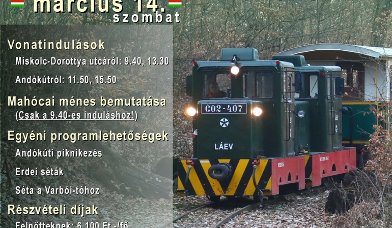 A nemzeti ünnep hétvégéjén ismét különjárat indul a LÁEV menetrendi vonatainál ritkábban használt mahócai szárnyvonalon, egészen Andókút megállóig. A környéken számos szabadidős lehetőség várja az érdeklődőket, a reggel 9:40-kor induló vonat utasai pedig sétát tehetnek a Mahócai Méneshez, ahol megcsodálhatják a lovakat és a gazdaság különleges hangulatát.