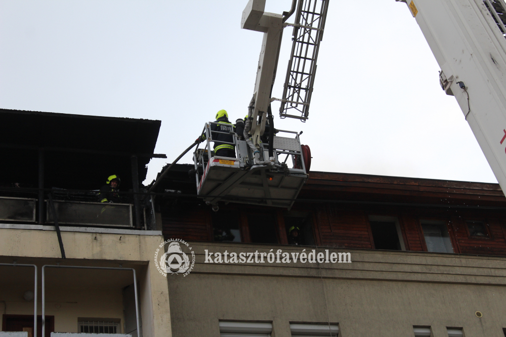 Az egységek egy mozgáskorlátozott embert kimenekítettek a negyedik emeleti lakásából, elfojtották a lángokat, átvizsgálták az épületet és a tetőszerkezetet, majd eltávolították a veszélyt jelentő cserepeket – tudatták.