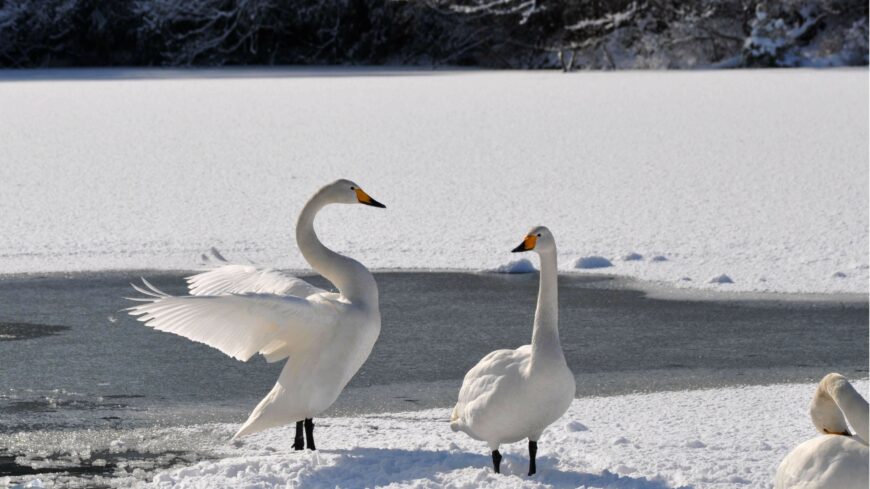 De hogyan bírják a fagyot? A récék és hattyúk titka a lábukban rejlik: az artériák és vénák különleges hőcserélő rendszere csak néhány fokkal melegebben tartja a végtagokat a jégnél, így nem fagynak oda a fagyott felülethez.